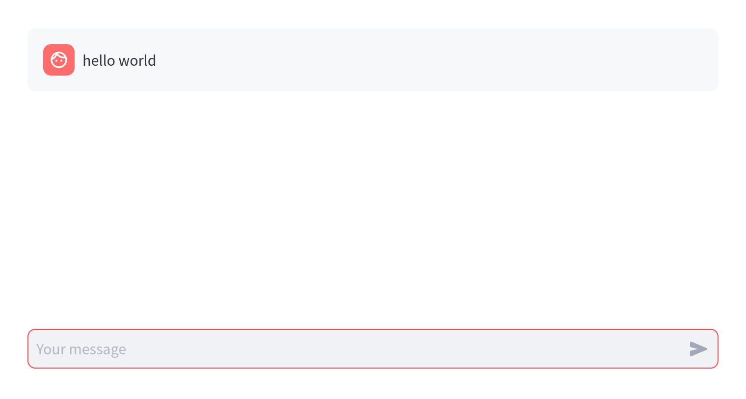 This is just a barebones app with no chat functionality at all. It will simply write anything you type in the input box back into the chat screen. But it will serve us to understand the basic application lifecycle in streamlit.