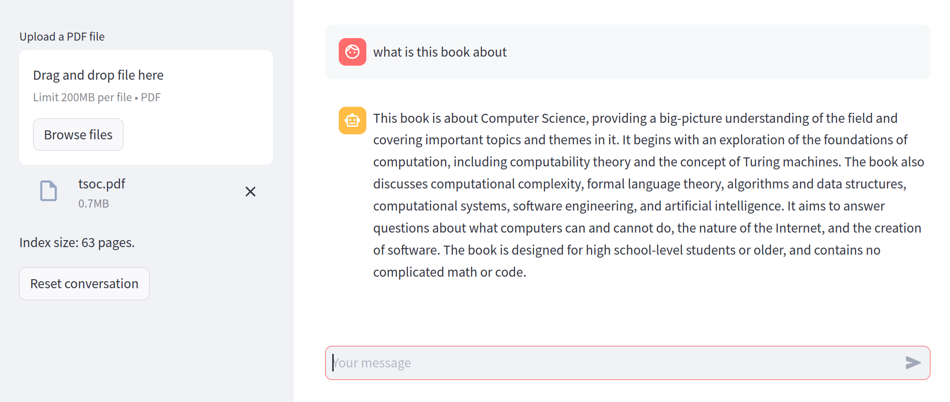 - The user uploads a PDF file.