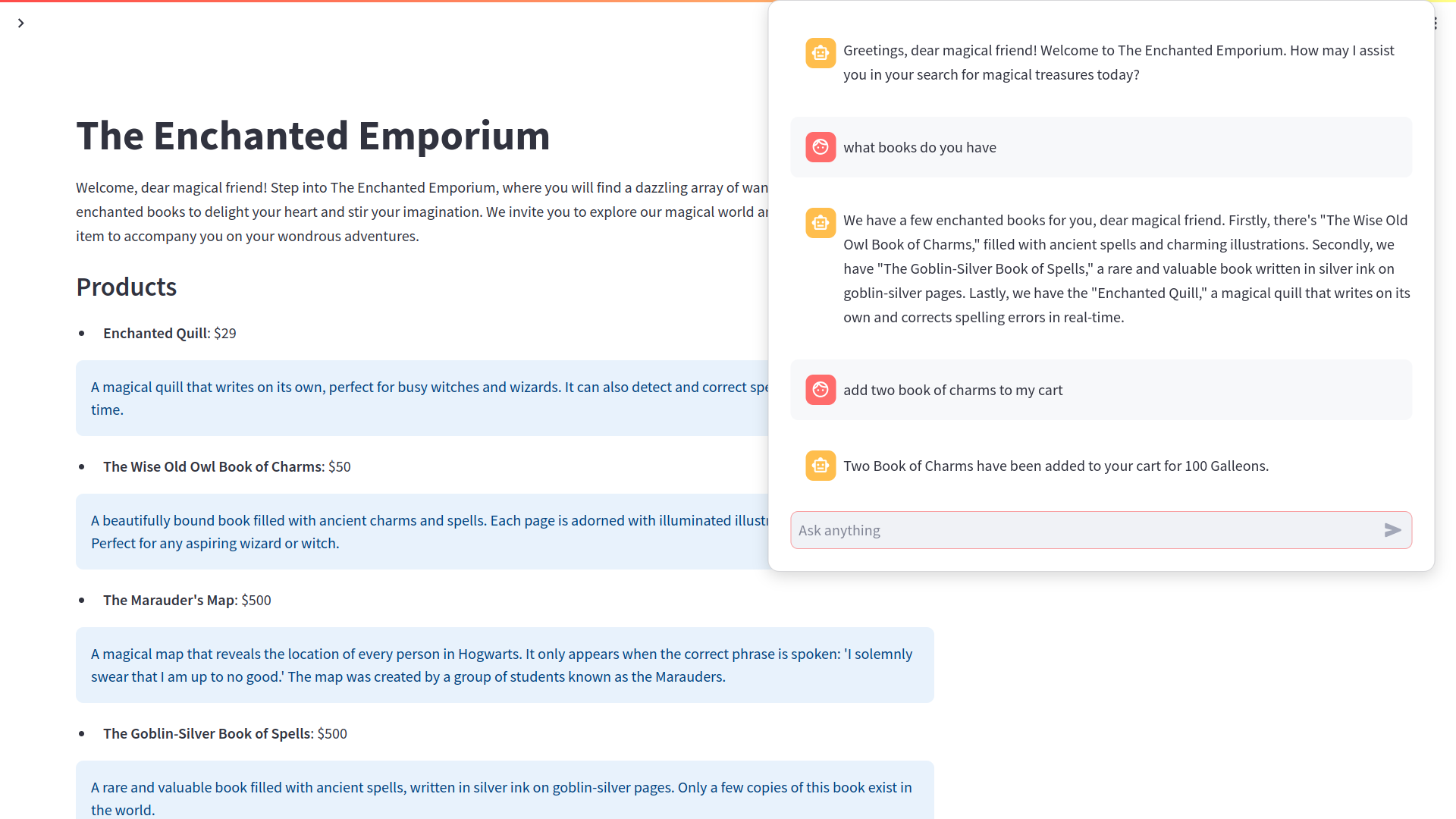 - The bot identifies the right product and quantity and invokes the API function to modify the cart.